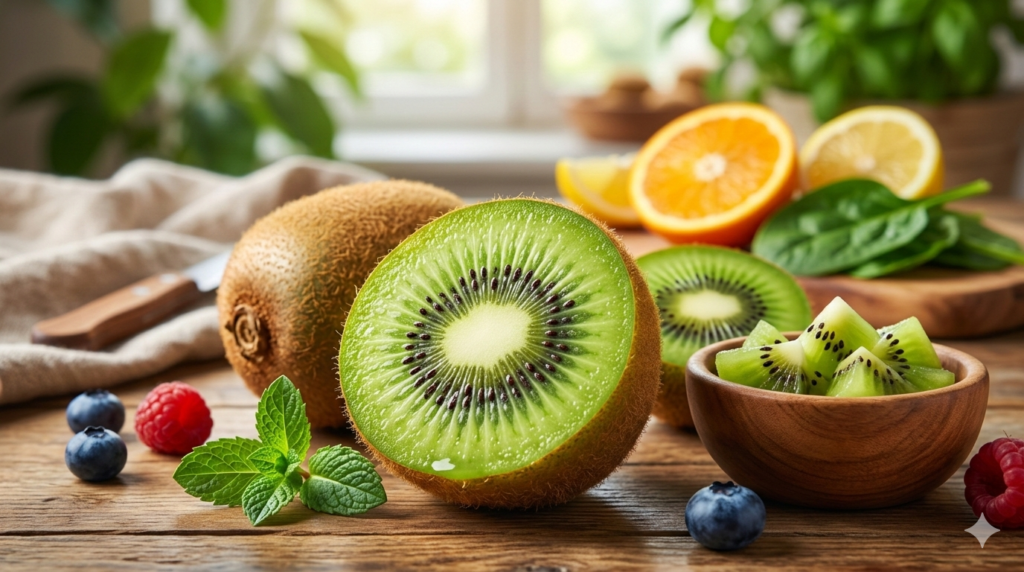 Kiwi contains vitamins C, K, and antioxidants that support immunity. Daily consumption may reduce cold symptoms and improve respiratory function. Include kiwi in breakfast or snacks. Fun tip: Slice kiwi into fruit salads for extra flavor and color.