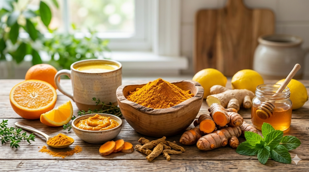 Turmeric contains curcumin, a compound with strong anti-inflammatory and antioxidant properties. Curcumin boosts immune cell activity and reduces chronic inflammation. Add turmeric to teas, soups, curries, or golden milk. Studies show curcumin may support respiratory health and reduce risk of infections. Fun tip: Pair turmeric with black pepper to enhance absorption.