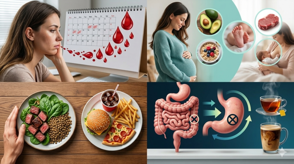 - Excess tea/coffee (blocks iron absorption)